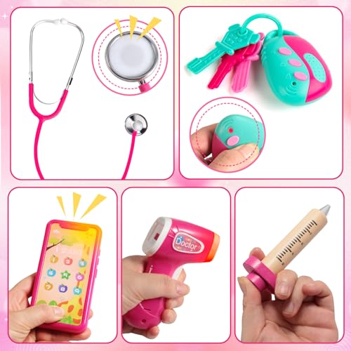 Pretend Play Girls Makeup Table Set with Stool,Open Doors by Gestures,Kids Vanity Set with Lights and Music,Toddler Beauty Salon Set with Makeup Accessories & Hair Dryer,Toy for Toddlers 2-5 Years Old Price in USA