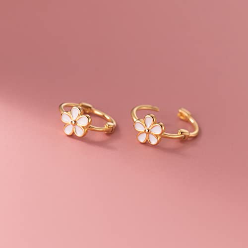 Reffeer Solid 925 Sterling Silver Flower Hoop Earrings Huggi...