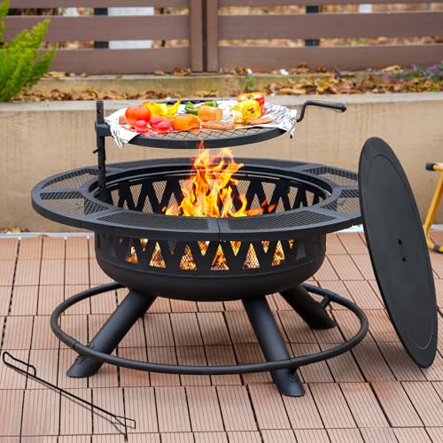 VEVOR X-Marks Fire Pit Grill Grate Foldable Round Cooking Grate Heavy Duty Steel Campfire BBQ Grill Grid with Handle and Support X Wire Portable Camping Cookware for Outside Party 36 Inch Black Price in USA