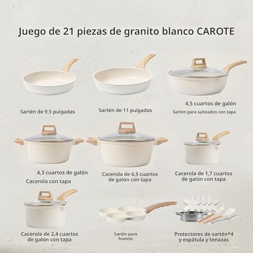 CAROTE 21Pcs Pots and Pans Set Nonstick Cookware Sets White Granite Induction Cookware Non Stick Cooking Set w/Frying Pans & Saucepans(PFOS PFOA Free) home and kitchen kitchen gadgets apartment essentials kitchen essentials kitchen accessories home essentials frying pan kitchen appliances kitchen and dining kitchen decor and accessories