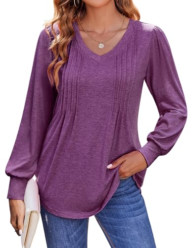VALOLIA Womens Blouses and Tops for Work Women Plus Size Blouses Casual Lightweight Tunic Shirts 3/4 Sleeves Loose Fitting Flared Aline Business Tunic Shirts to Wear With Leggings Purple X-Large