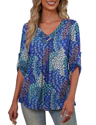 VALOLIA Womens Blouses and Tops for Work Women Plus Size Blouses Casual Lightweight Tunic Shirts 3/4 Sleeves Loose Fitting Flared Aline Business Tunic Shirts to Wear With Leggings Purple X-Large Price in USA