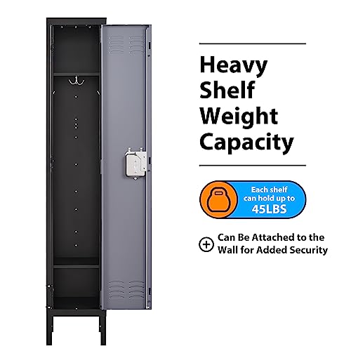 Anxxsu Metal Locker for Home Dressing Room Gym 65.98'' Steel Storage Lockers for Employees Lockable Locker Cabinet with 1 Door (Grey Black) (ML-0721) Price in USA