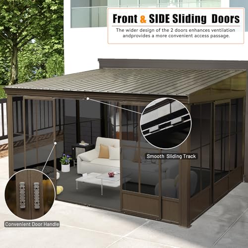 domi outdoor living 13' x 13' Patio Hardtop Gazebo Outdoor Screen House Aluminum Solarium with Galvanized Steel Roof Outdoor Permanent Sun Room for Patio Backyard & Lawn Dark Gray Price in USA