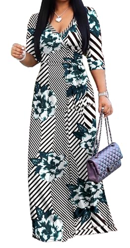 pnpednde Maxi Dress for Women Casual Flowers and Stripes Pri...