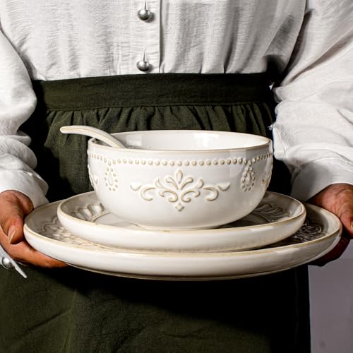 LOVECASA 12 Pieces Plates and Bowls Sets Porcelain White and...