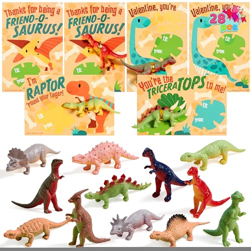 JOYIN 28 Pack Valentines Day Pullable Dinosaur Toys with Gre...