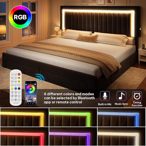 YITAHOME King Size Bed Frame with Adjustable Headboard 4 Sto...