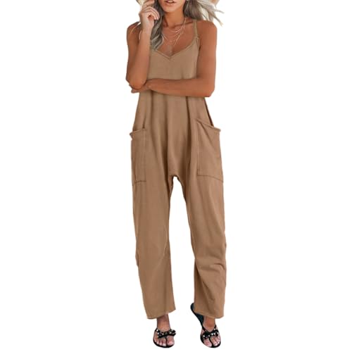 UNIANKIYA One Piece Jumpsuits for women V Neck Sleeveless Loose Fit overalls Spaghetti Strap Harem Long Pants with Pockets Price in USA