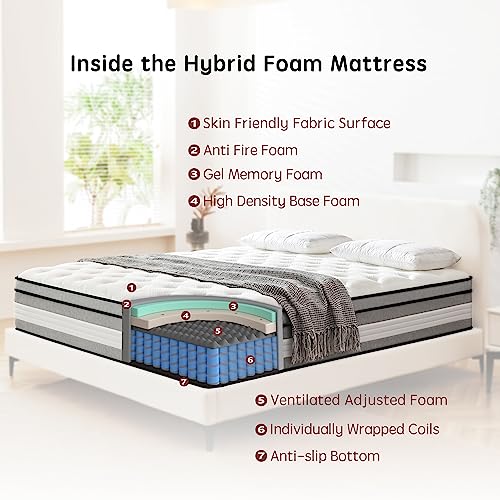 Dyonery Queen Mattress 12 Inch Charcoal Memory Foam Mattress in a Box CertiPUR-US Certified Fiberglass Free Gel Double Mattress Made in USA 80"" × 60"" × 12"" Medium Price in USA