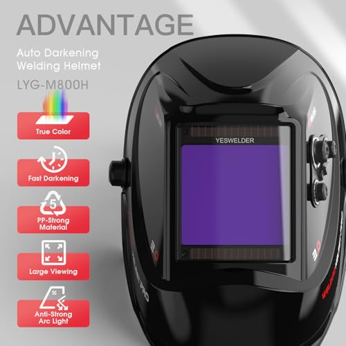 YESWELDER Large Viewing True Color Solar Powered Auto Darken...