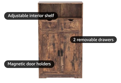 Iwell Storage Cabinet with 2 Drawers and Adjustable Shelves ...