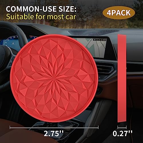 ME.FAN Car Cup Coaster [4 Pack] Silicone Car Coasters/Cup Mats - 2.75In Universal Non-Slip Recessed Car Interior Accessories - Car Cup Holder Insert Coasters Red