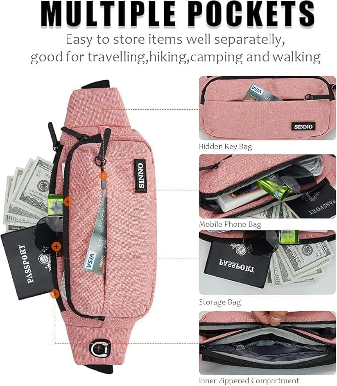 Capolo Fashion Fanny Packs with 4 Zipper Pockets for Women Brand: Capolo Material: Polyester Bag Size:7.4*5.7*1.5inch Adjustable buckle belt:30-47 inch Suitable Waist:27-47inch
