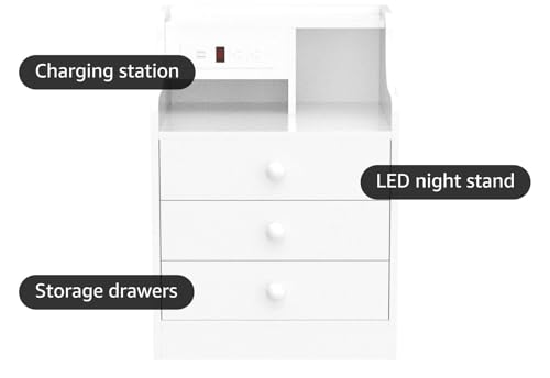 Nightstand with Gun Drawer Charging Bedside Table with USB & Type-C Port LED Night Stand with Human Sensor Design Modern End Table with Drawers for Bedroom Living Room Office Grey Price in USA