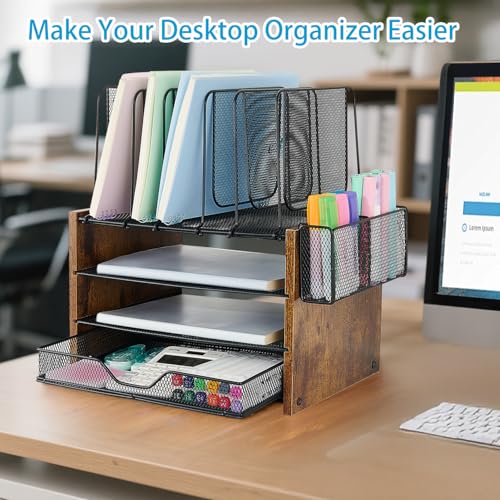 OPNICE Desk Organizers and Accessories Desk Accessories & Workspace Organizers for Office Supplies File Organizer Desk Drawer Organizer with 2 Pen Holders 4 Tier Paper Organizer for Desk