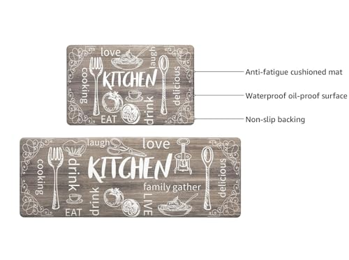 HEBE Anti Fatigue Kitchen Rug Sets 2 Piece Waterproof Non Sl...