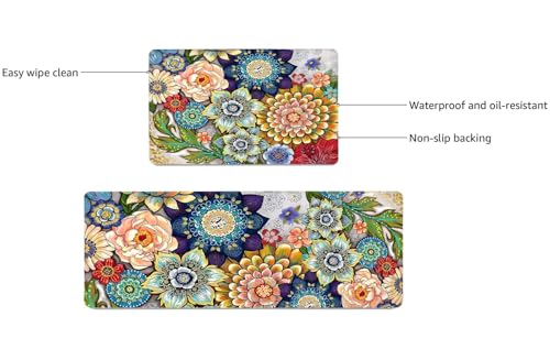 Tubeamin Boho Floral Kitchen Rugs Mats for Floor 2 Piece Mem...