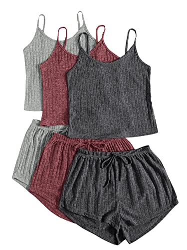 GORGLITTER Women's 3 Sets Ribbed Pajamas Set Sleeveless Crop Top and Tie Front Shorts Lounge Set Sleepwear Loungewear Pink Grey Green Large Price in USA