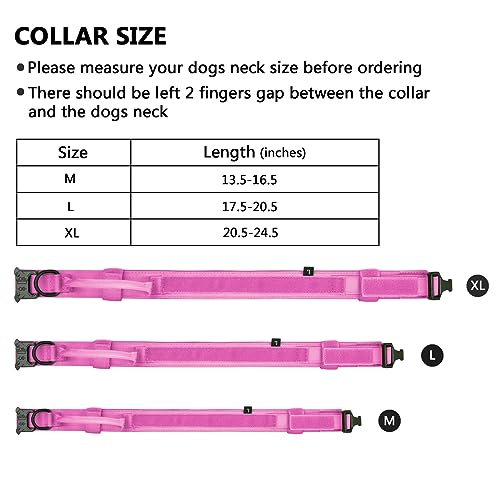 DAGANXI Tactical Dog Collar Adjustable Military Training Nylon Dog Collar with Control Handle and Heavy Metal Buckle for Medium and Large Dogs with Patches and Airtags Case (XL Pink)