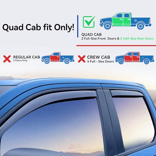 YQAUTEC Window Rain Guards Shield for 2009-2018 Dodge Ram 1500 Window Vent Visors Shades Wind Deflectors for 09-18 Ram 1500 - Quad Cab (Y237DR) Price in USA