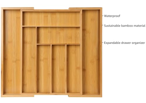Bamboo Expandable Drawer Organizer for Utensils Holder Adjus...