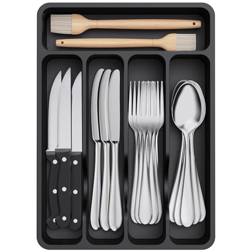 Lifewit Silverware Drawer Organizer Tray Plastic Cutlery Sto...
