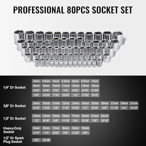VEVOR Mechanics Tool Set 207 Pieces 1/4\" 3/8\" 1/2\" Drive ...