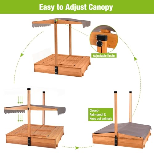 FunXplore Wooden Kids Sandbox with Lid Sand Box with Cover f...