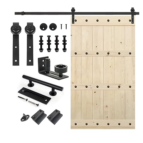 S&Z TOPHAND 48 in. x 84 in. Unfinished Big Copper Nail Knotty Barn Door with 8FT Sliding Door Hardware Kit/Solid Wood/Sliding Door/Single Surfaces Price in USA