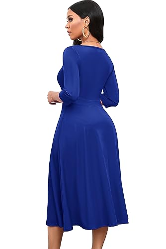 Nmoder Women's Casual Wrap Flared Midi Dress Wedding Guest Cocktail Tea Dresses A-Line Swing V-Neck 3/4 Sleeve Royal Blue M Price in USA