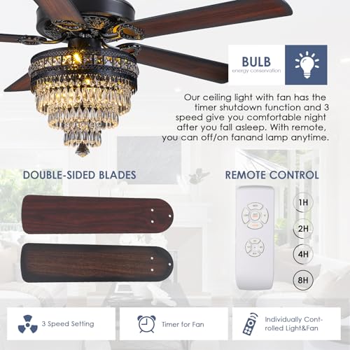 Asyko 52\" Ceiling Fan with Lights and Remote - Indoor/Outdoor Ceiling Fans Waterproof for Patios Gazebos and Backyards - Wet Rated Quiet 6-Speed 3-Color Lighting Farmhouse Modern Style Price in USA