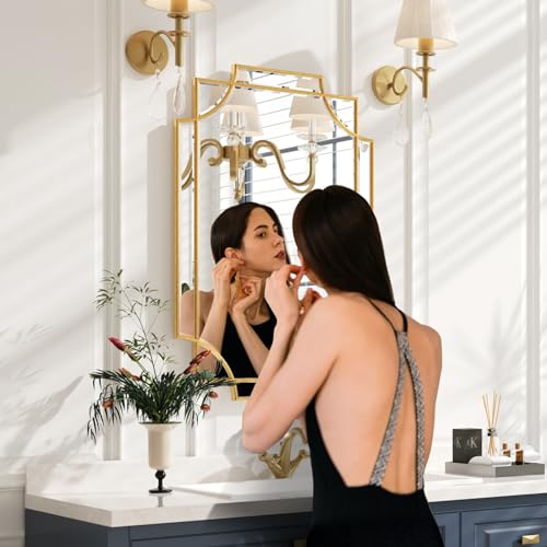 Kelly Miller 20\"x30\" Small Gold Bathroom Mirror for Wall Mount Beveled Vanity Mirror for Master Bath Half Bath Price in USA