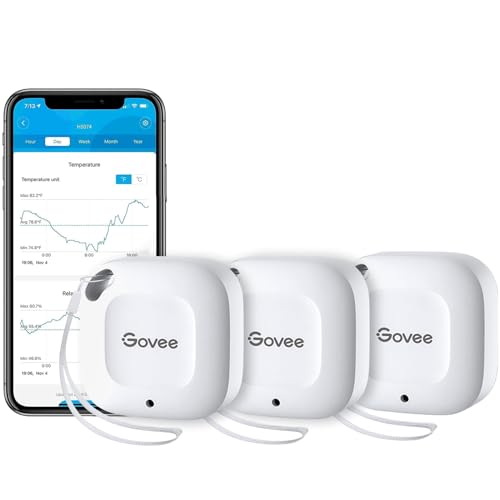 Govee Bluetooth Hygrometer Thermometer Wireless Thermometer Mini Humidity Sensor with Notification Alert Data Storage and Export 262 Feet Connecting Range 3 Pack H5074