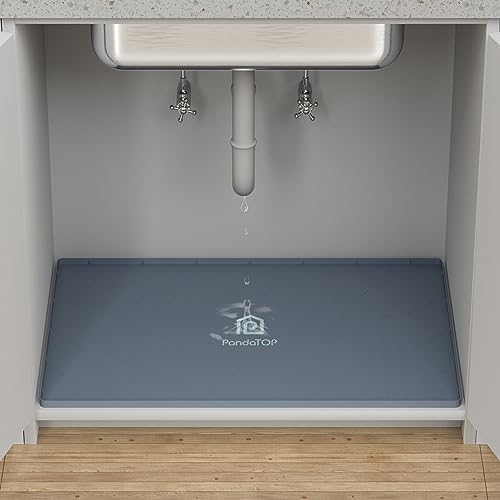 FORWOS Under Sink Mat 28"" x 22"" Silicone Mats for Kitchen Waterproof Under Sink Cabinet Organizers and Storage Sink and Cabinet Protector Under Sink Tray for Bathroom (Grey)