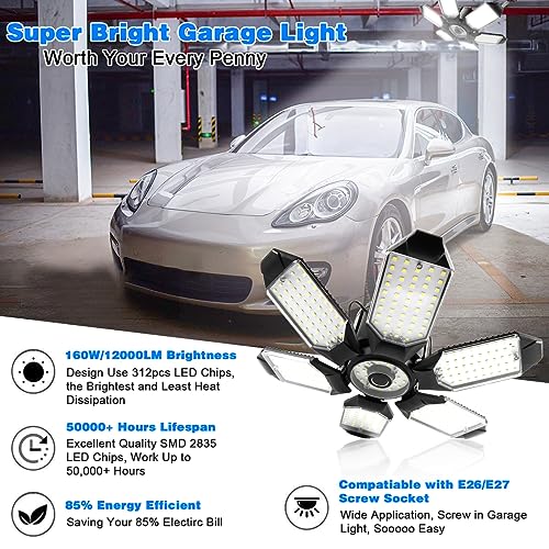 POLARPRA 32000LM Super Bright 6500K LED Garage Light Bulb w/...