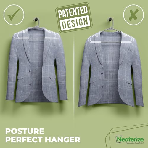 NEATERIZE Clothes Hangers Plastic 16 Pack for Adults - Plastic Hangers The Perfect Coat Hanger and Space Saving Clothes Hangers for Closet Percheros Ganchos para Colgar Ropa Hangars - Grey Hangers Price in USA