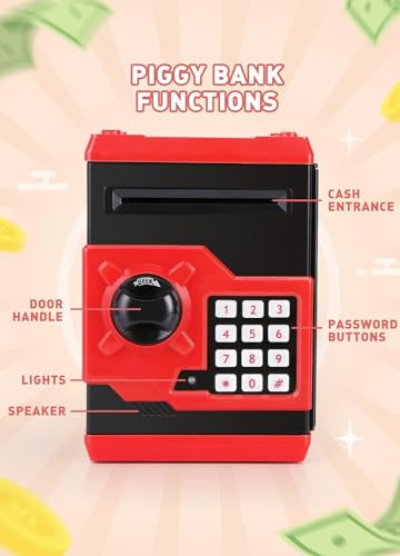 LJZJ Pink Piggy Bank for Kids with Password Code Lock and Auto Grab Bill Slot PhilaeEC Real Money Cash Coin Can Saving Box Electronic Money Safe Bank Hot Gift for 4 7 8 9 10 11 Year Old Boys Girls Price in USA