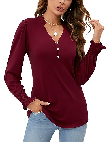 Rapbin Ruffle Long Sleeve V Neck T Shirts for Women Business...