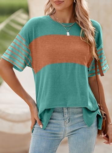 Dokotoo Womens Round Neck Knit Sweater Fashion Fall Striped Color Block Sweaters for Women Casual Pullover Jumper Tops
