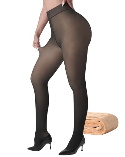 2 Pairs Womens Winter Warm Fleece Lined Elastic Tights Translucent fleece leggings has a windproof outer layer and a warm inner layer Slim and shape your abdomen hip lift stovepipe for a slimmer appearance. Keep Warm Pantyhose womens tights Lined with soft fleece offering solid coverage from toe to torso and thick enough to warm you up in cold weather. Control Top Pantyhose Fleece lined tights women with a control top which stay up don't fall down. Perfectly show your body curves and make you look sexier. High Elasticity Soft fleece leggings comfortably hug your legs with their stretch-fit won't bunch up or sag Not easy to deform For Various Occasions Classical design winter leggings for women perfect for different kinds of occasions easy to dress with any outfits. tights for women perfectly match with any clothes slim skirts and sexy slit dresses