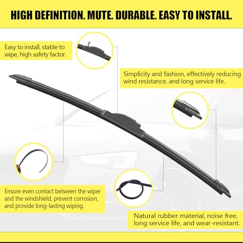OEM Quality Windshield Wiper Blades 22” and 22” DSV Standard Car Wiper Blades With Universal U/J Hook Automotive Replacement Wiper Blades for my Car Water Repellency Wiper Blade Pack of 2
