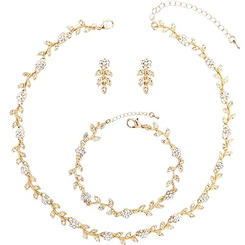 EVER FAITH Wedding Jewelry Set for Bride Bridesmaid Rose Gold Plated Teardrop Cubic Zirconia Leaf Vine Bridal Prom Necklace Dangle Earrings Bracelet Set for Women Price in USA