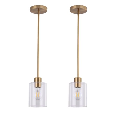 KLSS Brass Pendant Lights Kitchen Island Modern Farmhouse Clear Glass Pendant Light Gold Light Fixture Kitchen Pendant Mini Hanging Light Fixture for Sink (Brass 2 Pack stem Rod) Price in USA