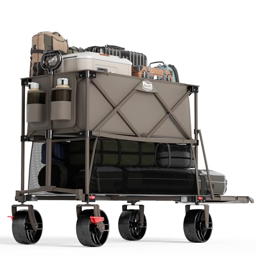 TIMBER RIDGE 47"" L Collapsible Folding Wagon with Tailgate 300lbs Heavy Duty Beach Wagon with All-Terrain Big Wheels 250L Foldable Utility Wagon Cart for Sand Camping Sports Shopping Gray Price in USA