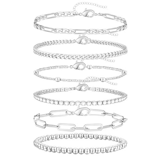 adoyi Dainty Sterling Silver Chain Bracelets Set for Women W...