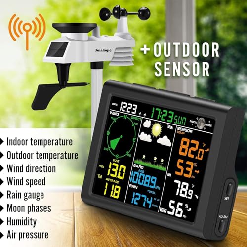 VEVOR WiFi Weather Station 7-in-1 Weather Stations WiFi Indoor Outdoor 7.5"" Color Display for Weather Forecast Temperature Humidity UV Air Pressure Wind Speed&Direction Rain Alarm Price in USA