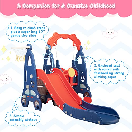 4-in-1 Kids Slide and Swing Set Toddler Slide with Basketball Hoop Swing Outdoor Indoor Playground Outdoor Indoor Playground for Toddlers 1-3