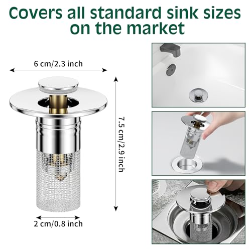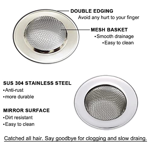 [SIZE] 2.212"" Top diameter 1.0"" Basket this strainer is geat for 1.0"" drain. PLEASE CAREFULLY CHECK THE DIAMETER OF YOUR DRAIN SIZE BEFORE YOU PURCHASE. We have other larger sizes of sink strainer (ex.1.25"", 1.50"" and 1.75"") I recommend choosing the largest size strainer basket according to your drain size which will make your drainage smoother. [EASY TO CLEAN] With mirror surface no oil stains can be easily cleaned by just washing with water. [SMOOTH DRAINAGE] Full bore cistern designed with 0.08 inch diameter poles.This tub strainer can effectively grab the hair and debris and not make the draining slowly. [SAVE MONEY and ENVIRONMENT] A single plumber visit can cost hundreds. Drain snakes and liquid drain cleaners are a hassle to use and aren't always effective—not to mention the toll they take on the environment and on your pipes.