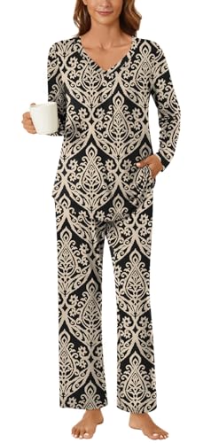 Pink Queen Women's Two Piece Outfits Sweater Sets Oversized Long Sleeve Top Sweatpants Fall Pajamas Black Stripe XL Price in USA